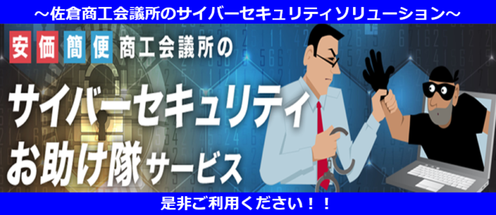当所は「商工会議所サイバーセキュリティお助け隊サービス」の ・再販事業会議所です ・同サービス利用事業所です