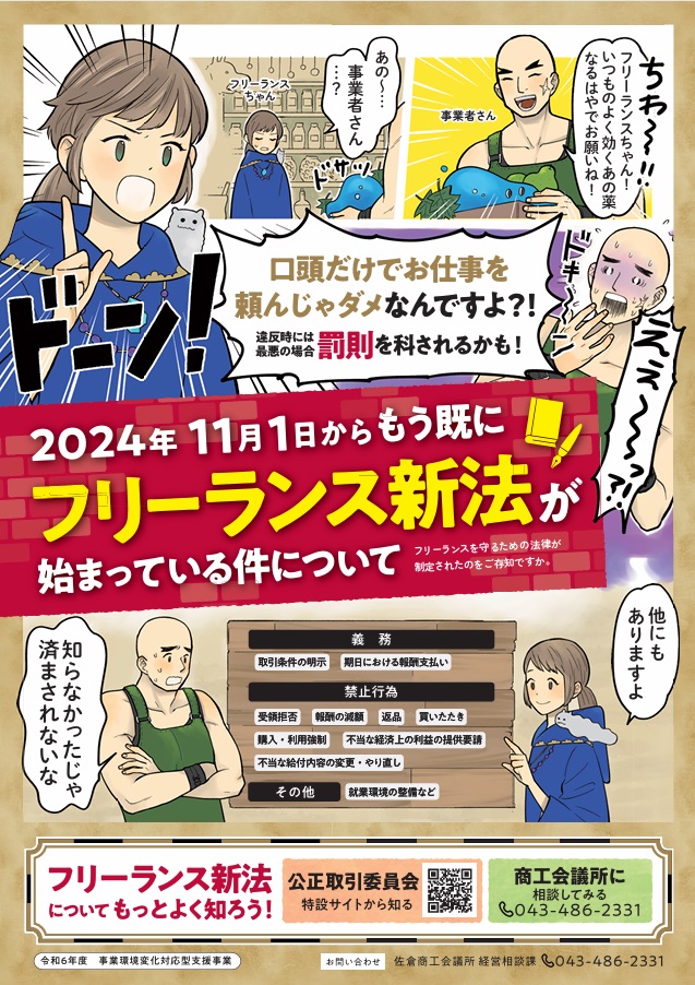 佐倉商工会議所 > 新着情報 > フリーランス新法が始まっています