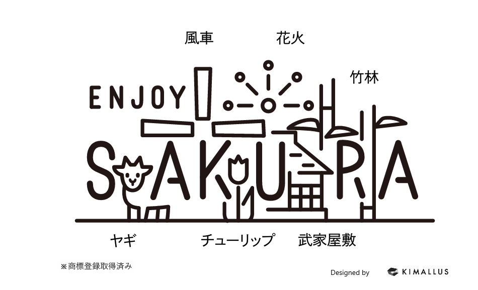 花火などのモチーフをちりばめた、佐倉の風景を愛する人のためのロゴです。